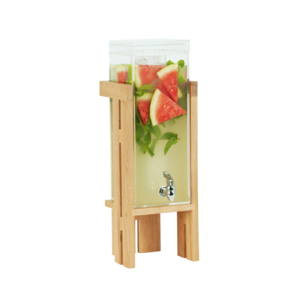 The Cal Mil 23141-3-21 Sydney Beverage Dispenser is a meticulously designed unit, measuring 9.750 inches in width, 8 inches in depth, and 29 inches in height, with a capacity of 3 gallons. This beverage dispenser is equipped with a removable spigot, emphasizing convenience and ease of maintenance. The construction features oak material, lending a touch of natural elegance and durability to its design. This combination of size and construction makes it suitable for a range of environments, from upscale hospitality settings to casual dining venues that value both functionality and aesthetics. The dispenser's substantial capacity of 3 gallons ensures it can cater to a high volume of guests, making it ideal for events, conferences, or busy service periods in restaurants and cafes. The compact dimensions allow it to fit comfortably on various surfaces, maximizing space efficiency without compromising on capacity. The removable spigot feature enhances the user experience by simplifying cleaning and ensuring hygienic operation, which is crucial in high-traffic areas. The Cal Mil 23141-3-21 Sydney Beverage Dispenser is a versatile and reliable choice for industry professionals seeking a blend of style and practicality in beverage service solutions.