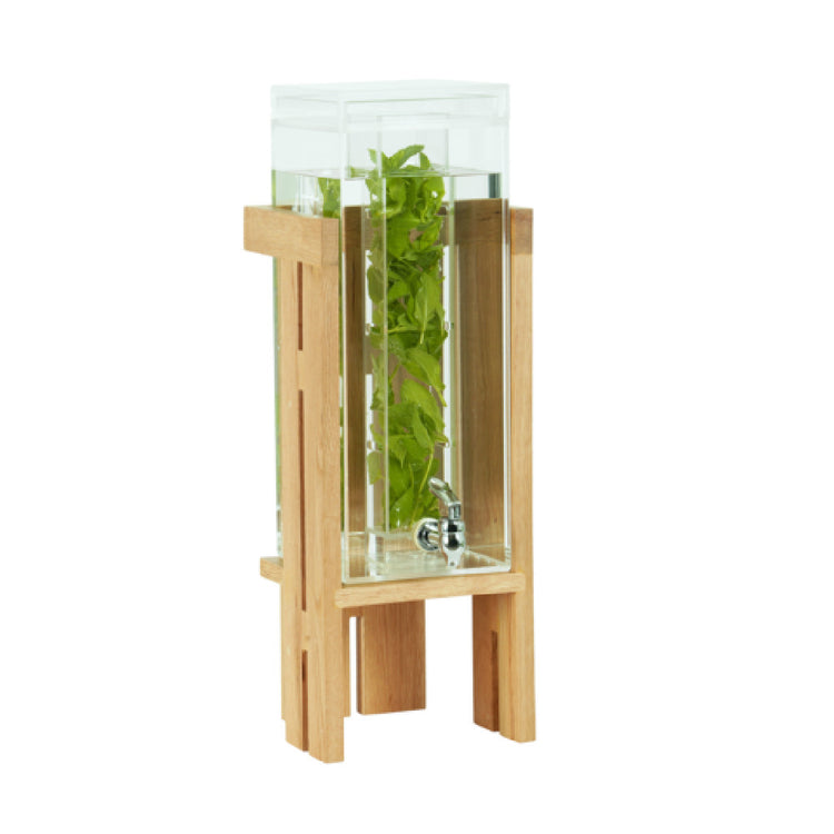 The Cal Mil 23141-3INF-21 Sydney Beverage Dispenser is thoughtfully designed for professional environments requiring high-capacity beverage solutions. With precise dimensions of 9.750 inches in width, 8 inches in depth, and 29 inches in height, this dispenser is engineered to fit seamlessly into a variety of commercial spaces. Its 3-gallon capacity ensures that it can accommodate large volumes of beverages, making it an ideal choice for high-traffic hospitality venues, catering events, and self-service stations. A notable feature of this dispenser is its infusion chamber, which allows for the creative addition of fruits, herbs, or other flavor enhancers to beverages, offering a unique and refreshing experience for users. The removable spigot is designed for ease of cleaning and maintenance, ensuring hygiene standards are easily met. Constructed with oak, the Sydney Beverage Dispenser presents a blend of functionality and aesthetic appeal, making it a sophisticated addition to any setting. This dispenser effectively balances durability and style, catering to a diverse range of market segments within the food and beverage industry. Its technical proficiency and elegance make it an invaluable asset for operators seeking a reliable beverage dispensing solution.