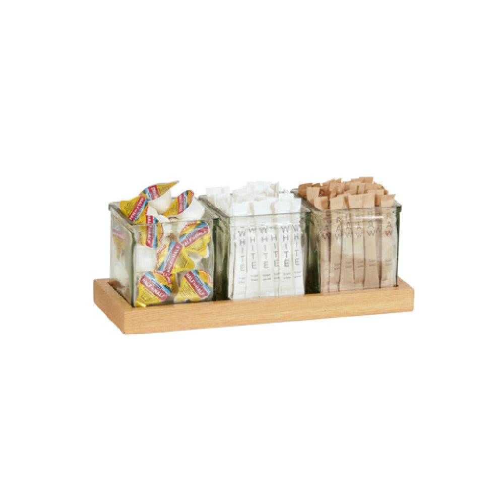 Cal Mil 23183-21 Sydney 3 Jar Display, with dimensions of 12.75"W x 5"D x 4.5"H, is crafted from high-quality oak, providing both durability and a touch of elegance. This product is an optimal solution for various industry segments such as hospitality, retail, and culinary services. Its compact size makes it ideal for space-conscious displays while ensuring maximum visibility and accessibility for each of the three jars it accommodates. The oak construction not only offers a sturdy and long-lasting framework but also adds a natural and sophisticated aesthetic to any setting. This display is particularly effective for showcasing condiments, toppings, or small items in buffet-style settings or on retail countertops. Its simple yet refined design allows it to seamlessly integrate into diverse environments, enhancing organization and presentation. The Cal Mil 23183-21 Sydney 3 Jar Display stands out for its combination of functionality and style, making it a valuable addition to establishments that prioritize both utility and visual appeal in their service and presentation strategies.