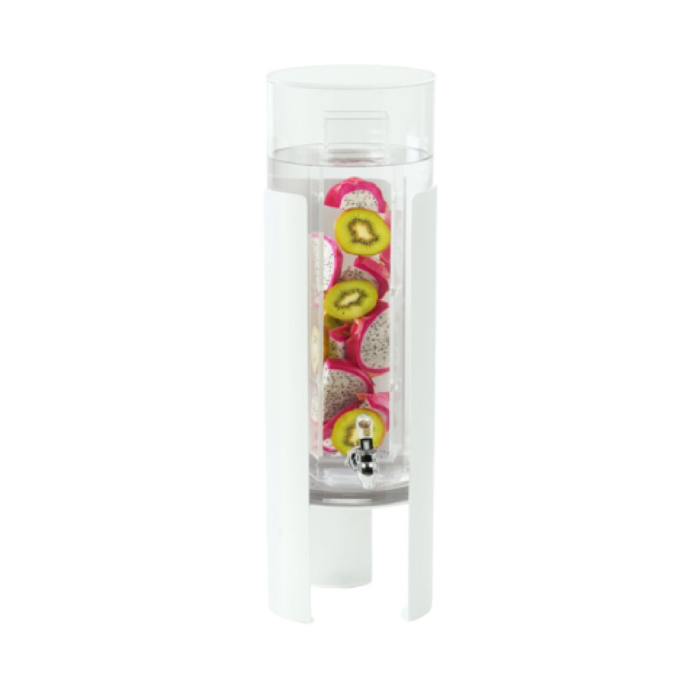 The Cal Mil 23203-3INF-15 Juno Beverage Dispenser is a sophisticated solution for presenting a variety of infused beverages, measuring 8 inches in diameter by 26.5 inches in height. This dispenser boasts a 3-gallon capacity, making it ideal for establishments that require a balance between volume and efficiency, such as cafes, restaurants, and event venues. The inclusion of an infusion chamber allows for creative beverage options, enabling users to enhance water, tea, or other drinks with fruits, herbs, or spices. Constructed with durable white metal, this dispenser is designed for longevity and reliability, ensuring it can withstand frequent use while maintaining its aesthetic appeal. Its sleek design complements any setting, providing both functionality and a modern touch to beverage service areas. The Cal Mil 23203-3INF-15 Juno Beverage Dispenser is engineered to meet the needs of diverse market segments, from hospitality to corporate events, offering a unique combination of practicality and elegance that enhances the beverage experience for both providers and consumers alike.