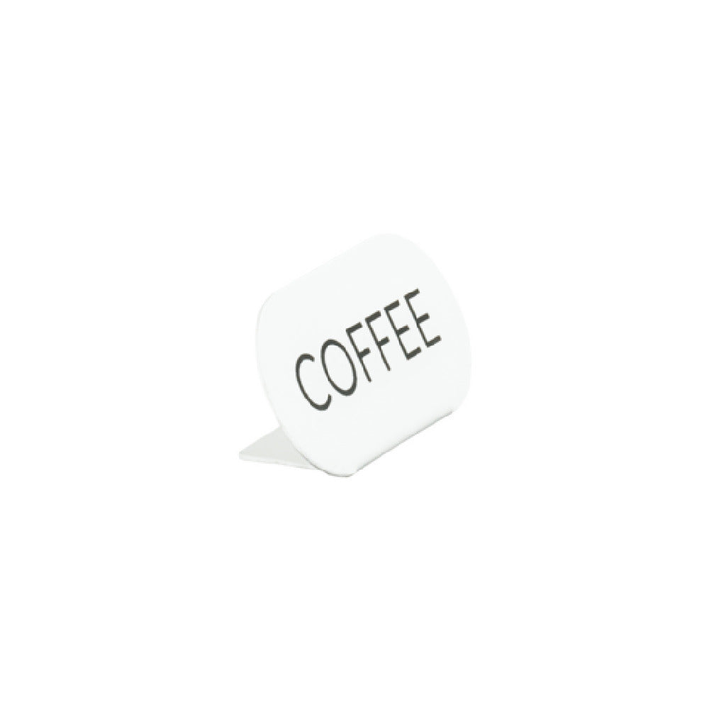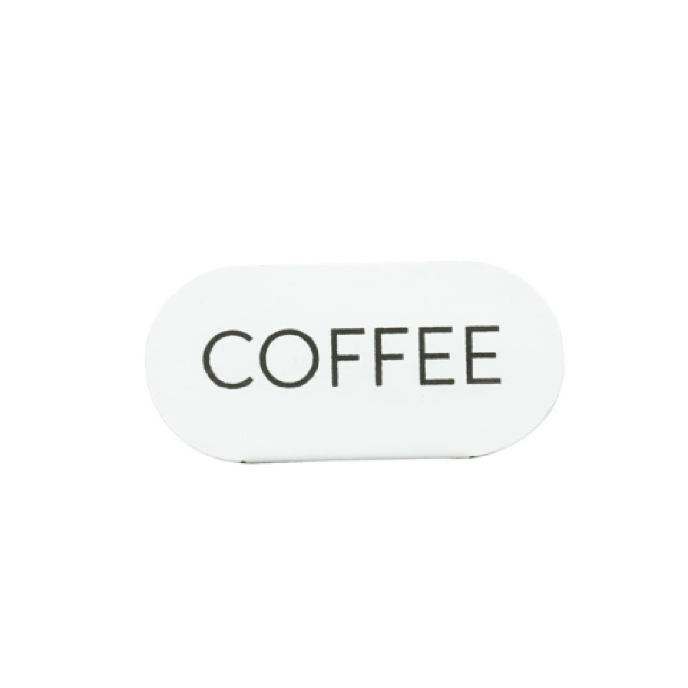 The Cal Mil 23401-1-15 Juno Tent "Coffee" 4.5"W X 2"H Oval is a standout display accessory crafted from sturdy white metal, characterized by its sleek oval shape and compact dimensions of 4.5 inches in width and 2 inches in height. This piece is specifically designed to cater to various sectors within the hospitality and food service industries, providing a versatile labeling solution. Its durable construction ensures longevity and resistance to wear, making it suitable for both high-traffic environments and more intimate settings. The elegant white metal finish allows for easy integration into various interior design themes, enhancing the overall aesthetic appeal of display areas. This product is particularly beneficial for establishments looking to organize and clearly communicate product offerings to customers, from bustling cafes to upscale dining venues. The minimalist yet functional design of the Cal Mil 23401-1-15 Juno Tent makes it an essential tool for efficient service operations, helping businesses streamline their presentation while maintaining a clean and professional appearance. By delivering clear and concise product information, this Juno Tent empowers establishments to elevate their service quality and customer engagement effectively.