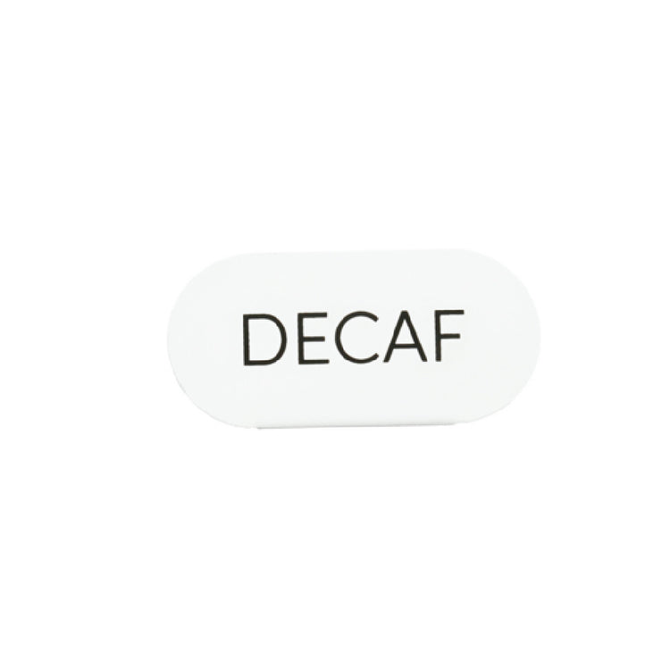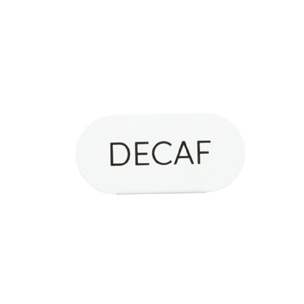 The Cal Mil 23401-2-15 Juno Tent "Decaf" is an elegantly designed product that fits seamlessly into any professional setting, particularly within the hospitality and restaurant industries. Measuring 4.5 inches in width and 2 inches in height, this oval-shaped tent is crafted from a sturdy white metal construction, ensuring both durability and a sleek aesthetic. Its dimensions make it ideal for clear and unobtrusive tabletop identification, perfect for distinguishing decaffeinated beverage options in a busy café or hotel environment. The high-quality metal used in its construction not only enhances its longevity but also provides a modern and clean look that complements a wide range of interior decors. This product is particularly valuable for establishments that prioritize efficient service and organization, offering a simple yet effective means of communication with patrons. Its understated elegance and robust build make the Cal Mil 23401-2-15 Juno Tent "Decaf" a practical and stylish choice for enhancing customer experience in various service settings.