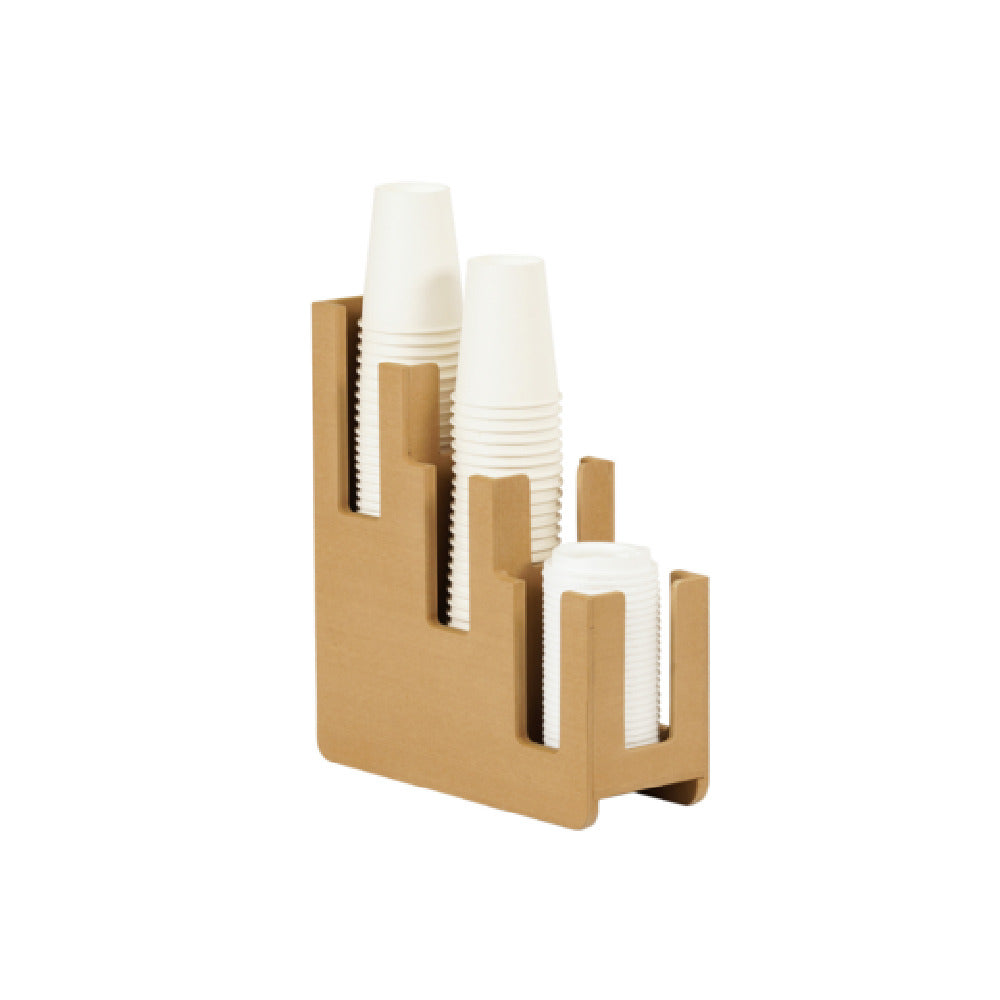 The Cal Mil 23434-122 Renew Lid/Cup Holder is a compact and efficient storage solution designed with both functionality and sustainability in mind. With dimensions of 5 inches in width, 13 inches in depth, and 15 inches in height, this holder is engineered to maximize space efficiency while providing easy access to lids and cups. Its unique three-step design facilitates organized storage, allowing users to separate items by size or type. A standout feature of this product is its construction from upcycled rice hulls, emphasizing environmental consciousness and durability. This sustainable material choice not only reduces waste but also enhances the product’s strength, making it a reliable option for high-traffic areas. Ideal for use in commercial settings such as coffee shops, hotels, or office break rooms, the Cal Mil 23434-122 offers a practical solution for maintaining a tidy and organized beverage station. The innovative use of upcycled materials aligns with eco-friendly practices, appealing to businesses and consumers seeking sustainable product solutions. This product caters to a variety of market segments, combining aesthetic appeal with practical utility, and underlines Cal Mil's commitment to sustainability and innovative design.