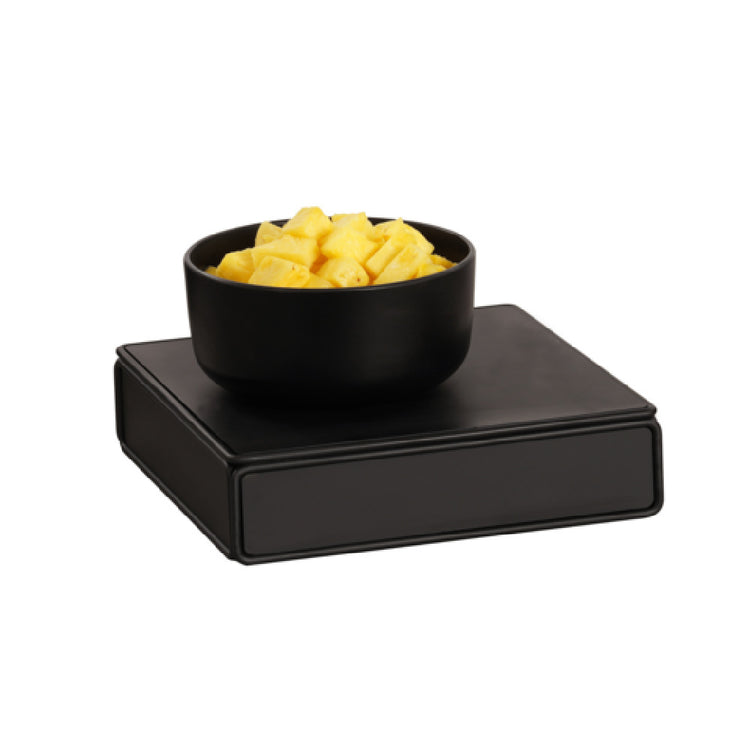 The Cal Mil 23704-3-13 Riser 12"W x 12"D x 3"H Square is a versatile and stylish addition to any display setting, crafted with precision from black metal construction. This riser measures 12 inches in width, 12 inches in depth, and stands 3 inches high, providing a sturdy and reliable platform for showcasing a variety of items. Its square shape and sleek Onyx finish make it a visually appealing choice for enhancing the presentation of products in various environments, including retail spaces, restaurants, and catering events. The robust metal construction ensures durability and longevity, making it suitable for frequent use. This particular riser is designed to seamlessly integrate into any modern or contemporary decor, offering a sophisticated touch to any display arrangement. Its compact size allows for easy placement on countertops or tables, maximizing visibility and accessibility of displayed items. The Cal Mil 23704-3-13 Riser is an excellent choice for businesses looking to elevate their product presentation, offering both functionality and aesthetic appeal in one complete package.