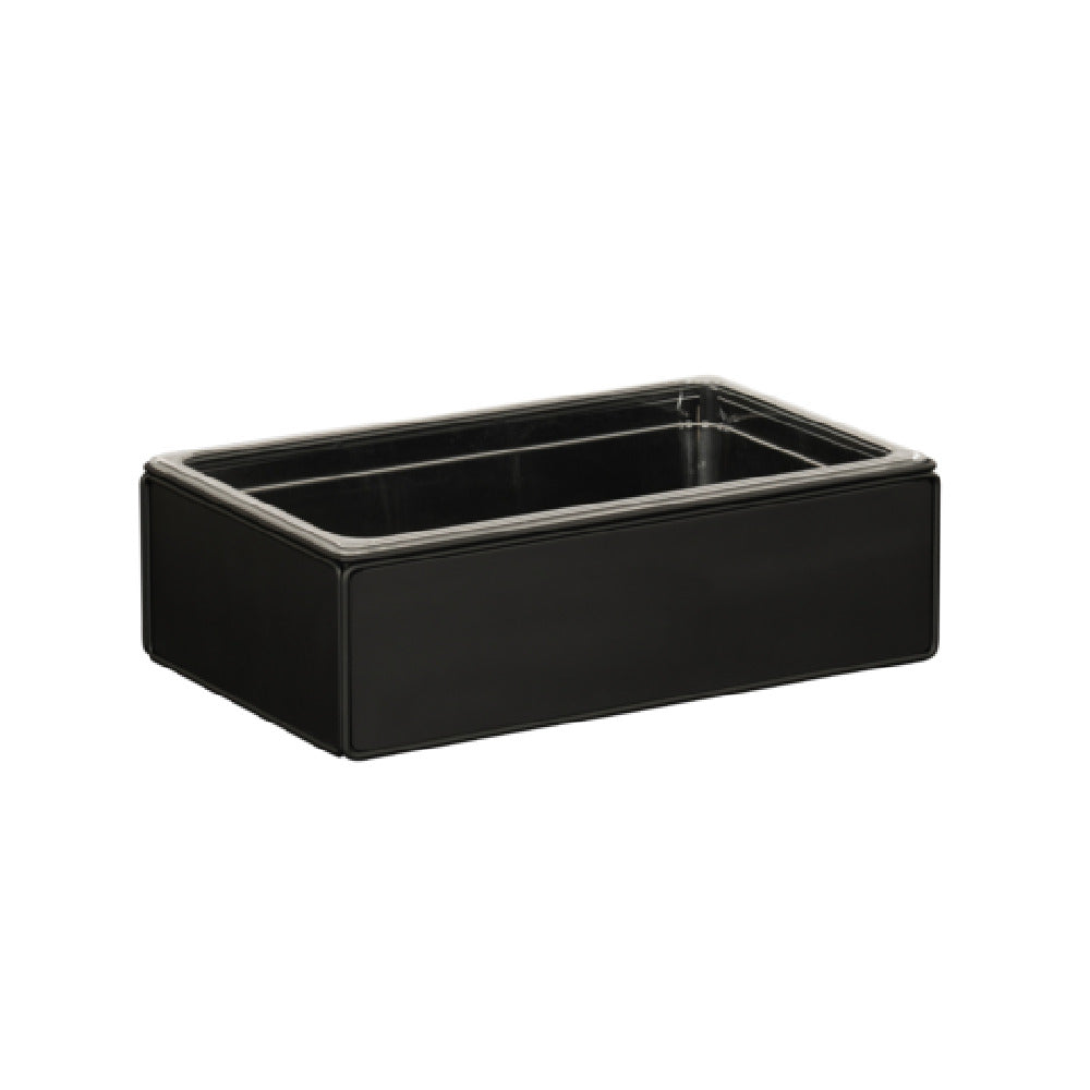 The Cal Mil 23709-12-13 Ice Housing is a versatile and durable solution designed for both commercial and residential use where efficient ice storage is essential. With dimensions of 21"W x 13"D x 7"H, this ice housing offers ample space for ice presentation or storage, fitting seamlessly into various service settings. The black metal construction ensures robustness and longevity, making it an ideal choice for environments that demand durability and style. The Onyx finish adds a sleek and professional touch, enhancing the aesthetic appeal of any space it occupies. This product is particularly suited for catering services, buffets, and hospitality sectors where maintaining optimal ice conditions is crucial. The thoughtful design not only supports practical ice storage but also contributes to effective food and beverage presentation, aligning with the needs of diverse market segments that prioritize both functionality and visual impact. Its sturdy build and elegant finish make the Cal Mil 23709-12-13 Ice Housing a valuable asset for any establishment aiming to combine practicality with sophistication in their service operations.