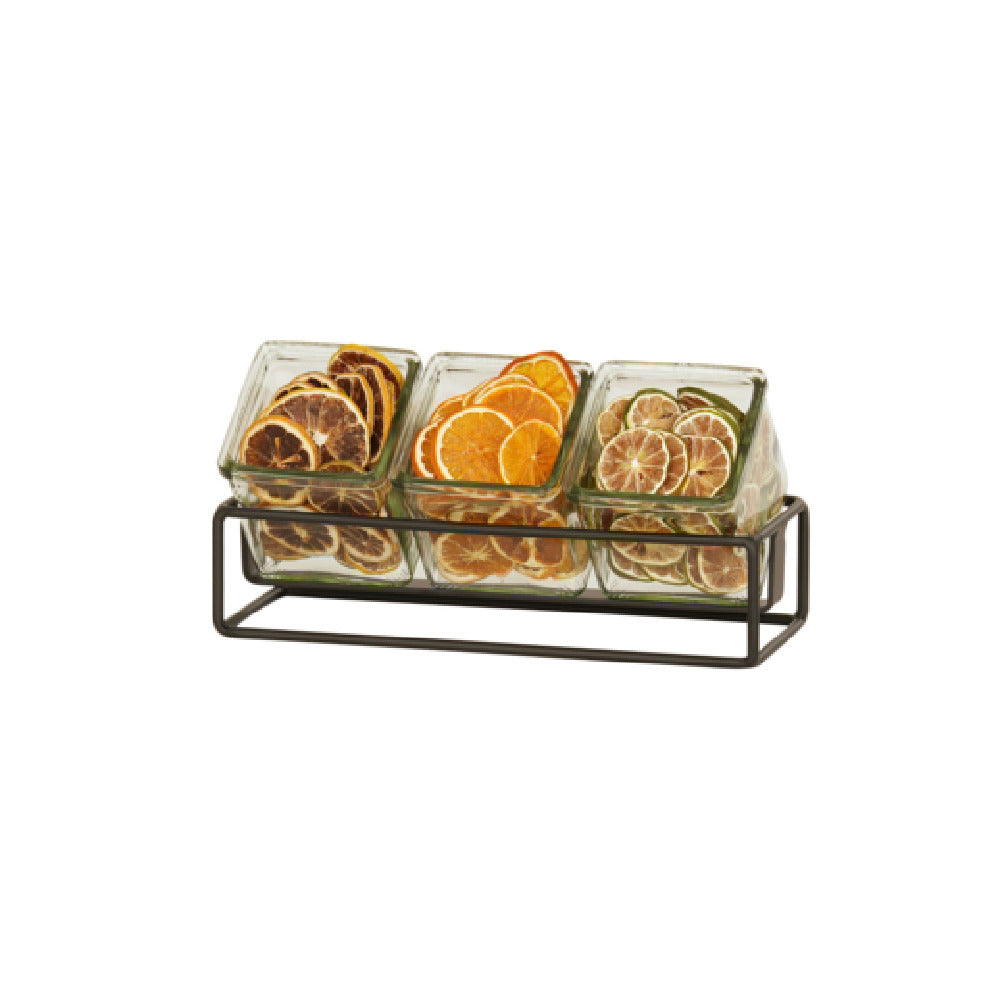 Cal-Mil, 23747-3-13, 3 Jar Holder, 12.5"W x 4.5"D x 3"H, includes 3 glass, black