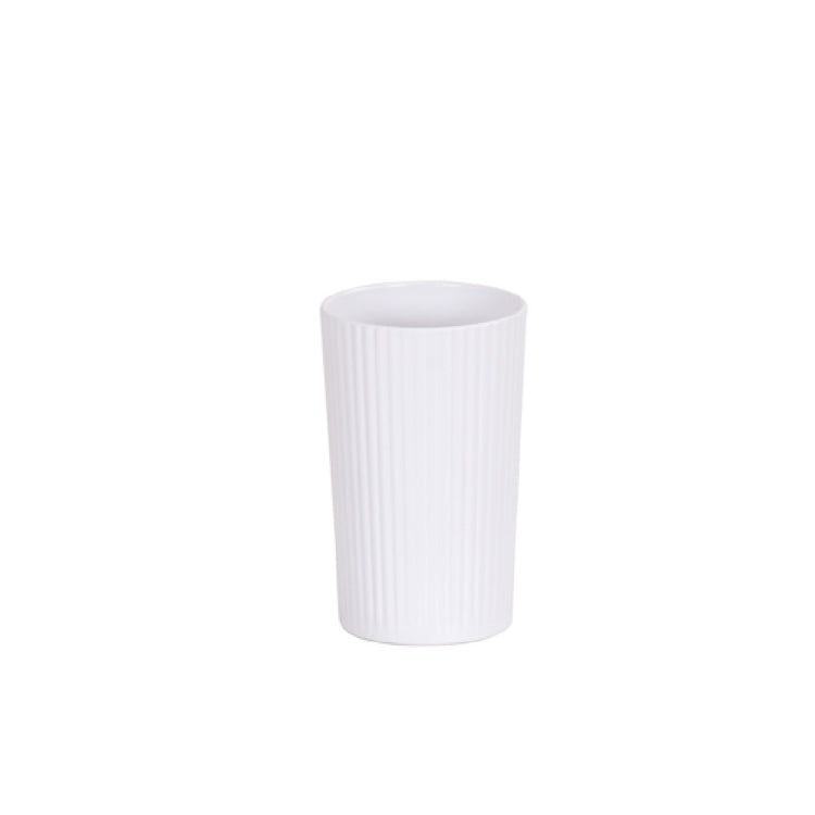The Cal Mil 24020-4-15 Ribbed Crock is a versatile and functional solution for diverse foodservice environments, measuring 3.75 inches in diameter and 6 inches in height. Crafted from durable melamine, this crock is distinguished by its robust and dishwasher-safe construction, making it a practical choice for busy commercial kitchens aiming to maintain high standards of hygiene and efficiency. Its ribbed design not only adds a touch of contemporary elegance but also enhances grip, ensuring ease of handling during service. The pristine white finish of the crock offers a clean and professional aesthetic, seamlessly integrating into various service settings, from salad bars to buffet lines. The crock's dimensions and material composition make it ideally suited for both display and storage of food items, catering to the needs of both large-scale events and intimate gatherings. Its suitability for dishwashers ensures quick and effortless cleaning, saving valuable time in fast-paced operations. Offering a harmonious blend of style and utility, the Cal Mil 24020-4-15 Ribbed Crock is an essential asset for caterers, restaurateurs, and hospitality professionals seeking reliable, attractive food presentation solutions.
