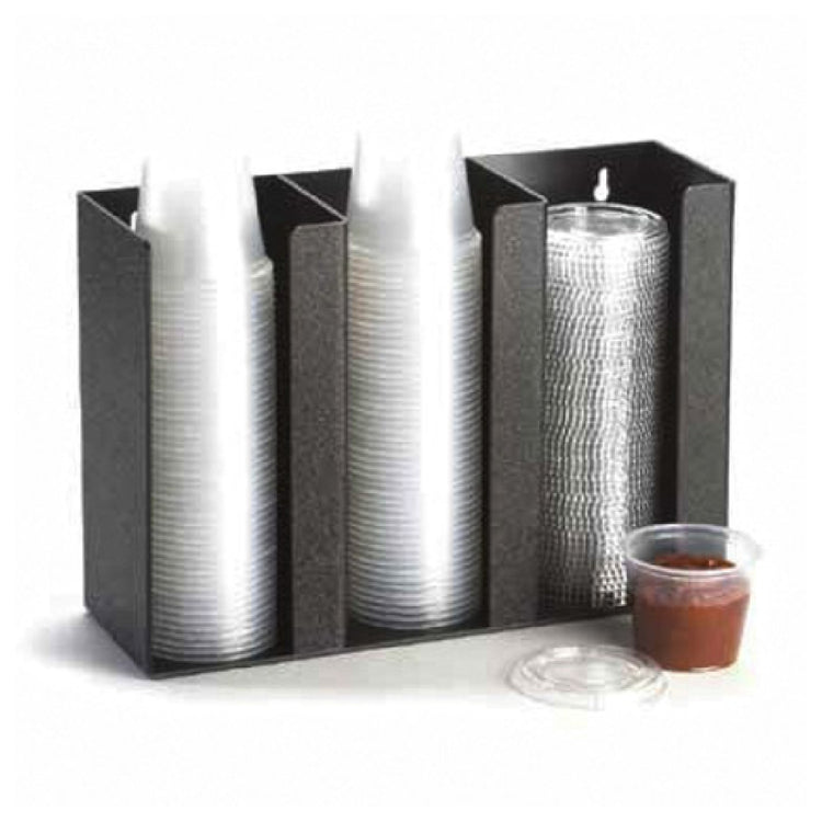 The Cal Mil 278-4 Classic Lid/Ramekin Organizer is an efficient solution for organizing lids and ramekins, specifically designed for both wall and counter mounting. Measuring 9 inches in width, 4 inches in depth, and 9 inches in height, this organizer is compact yet spacious, accommodating items up to a 4-inch diameter. Crafted from durable black plastic, it seamlessly integrates into various commercial settings, including restaurants, cafeterias, and catering services, where organization and space optimization are crucial. The sleek design not only enhances countertop aesthetics but also ensures easy access and retrieval, improving operational efficiency. Particularly useful in busy kitchen environments, the Cal Mil 278-4 contributes to a more organized workspace, reducing clutter and maximizing productivity. Its versatile mounting options provide additional flexibility, enabling use in diverse settings that require efficient storage solutions. This organizer exemplifies practicality and functionality, meeting the needs of different market segments within the food service industry, from fast-paced diners to upscale dining establishments, by offering a reliable and space-saving option for storing essential kitchen items. Its straightforward design and robust construction make it a dependable choice for professionals seeking to streamline their operations.