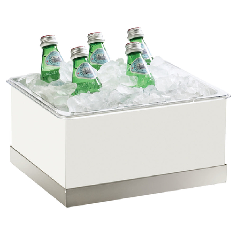 The Cal Mil 3005-10-55 Luxe Ice Housing is a meticulously designed storage solution, measuring 10 inches wide, 12-1/4 inches deep, and 6-1/2 inches high. This polycarbonate bin is crafted to meet the diverse needs of the food service and hospitality industries, providing a robust and attractive option for displaying chilled items. Its structural integrity is enhanced by a stainless-steel base accent and a white metal frame, which add a touch of elegance to its functional design. The use of polycarbonate material ensures durability and resistance to impact, making it an ideal choice for high-traffic environments. The Luxe Ice Housing's sleek aesthetics and sturdy construction make it suitable for upscale settings, such as hotel buffets, catered events, or restaurant displays. The combination of practical dimensions and durable materials ensures that the Cal Mil 3005-10-55 not only meets the functional requirements of various market segments but also enhances the visual appeal of any presentation. This product’s unique value lies in its ability to combine functionality with style, thereby addressing the needs of both operation-focused environments and design-conscious venues.