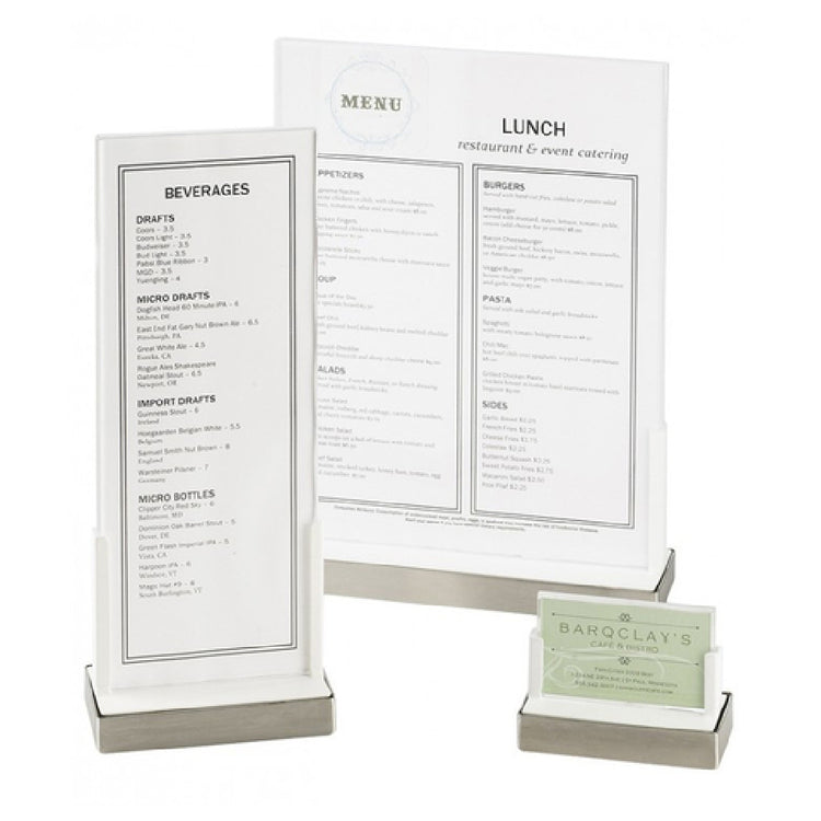 Cal Mil 3016-811-55 Luxe Menu Holder 9"W X 2-5/8"D X 12"H Accommodates 8-1/2"W X 11"H Menu/sign