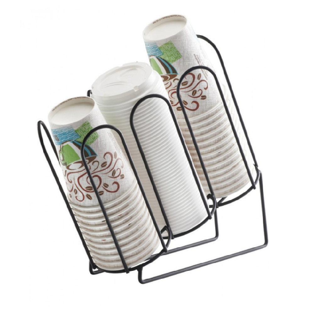 The Cal Mil 3036-13 Cup/Lid Organizer is a specialized storage solution designed for efficient organization in various commercial settings. With dimensions of 4-1/2 inches in width, 11-1/2 inches in depth, and 11-1/2 inches in height, this unit provides a compact yet practical design that seamlessly fits into any workspace. Featuring three sections, the organizer is slanted to allow for easy retrieval and organization of cups and lids, accommodating items up to 3-3/4 inches in diameter. Constructed from durable iron wire with a sleek black finish, it combines strength with aesthetic appeal, ensuring long-lasting use even in high-traffic environments. This cup and lid organizer is ideal for cafes, restaurants, and office break rooms, offering a tidy and professional way to keep beverage accessories accessible and organized. Its versatile design caters to different market segments, from small cafes needing efficient space utilization to larger establishments requiring multiple units for extensive service areas. The Cal Mil 3036-13 Cup/Lid Organizer is a functional and stylish addition to any professional setting, contributing to streamlined operations and enhanced presentation.