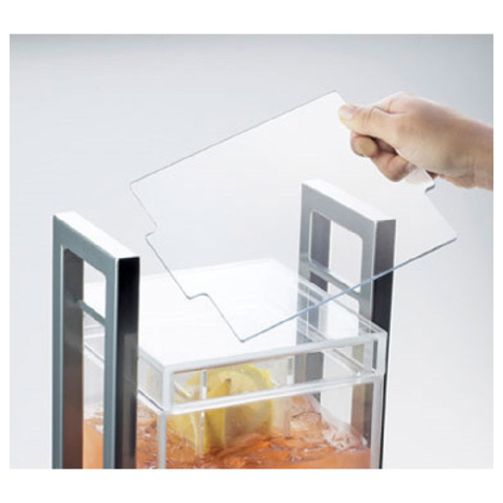 The Cal Mil 3302-3-13 One By One Beverage Dispenser is a meticulously designed appliance with a substantial 3-gallon capacity, ideal for a variety of settings, from catering events to self-serve stations. Its dimensions, 9 inches wide by 9 inches deep by 28-1/2 inches high, offer a compact yet significant presence. This square dispenser features an integrated ice chamber, ensuring beverages remain refreshingly chilled throughout service. The clear acrylic construction provides a sleek, modern aesthetic while allowing for easy monitoring of beverage levels. An included spigot ensures smooth and controlled dispensing, making it user-friendly for guests. The secure lid, complemented by a clear insert, ensures beverages are protected from contaminants. Top handles facilitate effortless transport and repositioning, enhancing its practicality. The black powder-coated steel frame not only adds durability but also offers an elegant contrast to the clear acrylic, making it a visually appealing choice for upscale environments. The Cal Mil 3302-3-13 is perfect for various industry segments, including hospitality and food service, where both functionality and aesthetic elegance are paramount. Its thoughtful design and robust construction cater to the needs of establishments seeking a reliable and stylish beverage service solution.