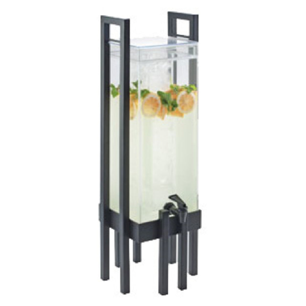 The Cal Mil 3302-3INF-13 One By One Beverage Dispenser is a versatile, high-capacity solution ideal for various service environments, featuring a 3-gallon capacity that caters to large gatherings with ease. Its square design, measuring 9"W x 9"D x 28-1/2"H, makes efficient use of space while maintaining a sleek, professional appearance. This dispenser includes an infusion chamber, allowing users to enhance beverages with fruits or herbs, adding a creative touch to any service. The clear acrylic construction ensures durability and visibility, so contents are easily identifiable, while the clear insert secures the lid, maintaining cleanliness and preventing spills. Equipped with a practical spigot, it offers smooth, controlled dispensing of drinks. The top handles make transportation effortless, and the black powdered coated steel frame provides a sturdy, stable foundation. This beverage dispenser is an excellent choice for catering services, hotel buffets, or any venue requiring a stylish and functional drink service solution, combining durability with the capacity to meet various needs in the hospitality industry.