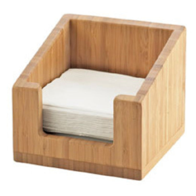The Cal-Mil 3309-60 Napkin Holder is a compact and efficient solution for organizing and dispensing napkins, measuring 6-1/4"W x 6-1/4"D x 5-1/2"H, specially designed to accommodate napkins of size 5"W x 5"H. Crafted from sustainable bamboo, this napkin holder not only offers a durable and sturdy structure but also adds an elegant and eco-friendly touch to any dining setting. Its precise dimensions make it an ideal choice for various environments, from bustling restaurants to cozy home dining areas, ensuring that napkins are always conveniently within reach. The bamboo construction provides a natural aesthetic that complements a wide range of décor styles, making it versatile for different segment markets such as hospitality, catering, and household use. By integrating both form and function, the Cal-Mil 3309-60 Napkin Holder stands out as a practical accessory for efficient napkin management in any setting where organization and accessibility are paramount. Its straightforward design ensures that it not only meets the basic functional needs but also contributes positively to the aesthetic value of the table or countertop it enhances.