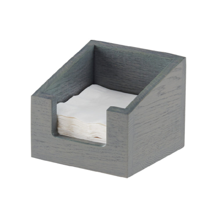 The Cal Mil 3309-83 Ashwood Napkin Holder Tabletop 5"W X 5"H is an elegantly crafted accessory designed to add a touch of sophistication to any table setting. This napkin holder boasts a compact design with dimensions of 5 inches in width and 5 inches in height, making it a perfect fit for any standard-sized napkin, while its square form factor enhances its visual appeal. Constructed from oak wood, the napkin holder is treated with a gray wash finish, offering a rustic yet modern aesthetic that seamlessly blends with various decor styles. This versatile tabletop accessory is ideal for both residential and commercial use, including restaurants, cafes, and event settings, where the combination of practicality and style is paramount. The choice of oak wood ensures durability and longevity, while the gray wash treatment provides a unique visual texture that complements a wide range of interior designs. The Cal Mil 3309-83 Ashwood Napkin Holder is a testament to quality craftsmanship, offering an exceptional blend of form and function that is suitable for diverse market segments looking to enhance their tabletop presentation.