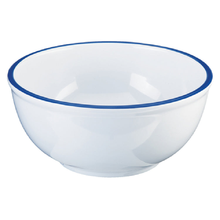 The Cal Mil 3343-10-15 Enamelware Bowl stands out in the market with its precise dimensions of 10-3/4 inches in diameter and 5 inches in height, highlighting its suitability for various culinary presentations. Crafted from durable melamine, this enamelware bowl combines practicality with an appealing aesthetic, making it a versatile addition to any food service context. The bowl's design is enhanced with a blue rim that adds a touch of elegance to its classic white finish, ensuring it seamlessly fits into both casual and formal dining settings. Notably, this product offers the advantage of being dishwasher safe, simplifying the cleaning process and maintaining hygiene standards in high-volume environments. Such features make the Cal Mil 3343-10-15 ideal for restaurants, catering services, and even home use, where efficiency and style are equally prioritized. Whether used for serving salads, side dishes, or as a centerpiece for culinary displays, this enamelware bowl delivers functionality and aesthetic appeal, catering to the needs of diverse market segments within the food service industry.