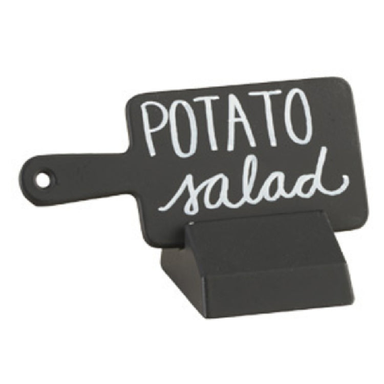 The Cal Mil 3345-13 Write-On Sign is a versatile communication tool designed for various industry sectors requiring dynamic display solutions. Featuring a compact yet generous write-on area measuring 4-1/2" W x 2" D, this sign is perfect for efficiently conveying messages, promotions, or instructions in a concise space. Its unique paddle shape and sturdy base ensure stability and ease of placement in any environment. Crafted from durable black melamine, the sign offers a sleek and professional aesthetic. Its compatibility with dry, wet, and chalkboard erase markers delivers a flexible and reusable surface, allowing for quick updates and changes. This product is particularly beneficial for restaurants, retail settings, or event spaces where frequent information changes are necessary. The melamine construction not only ensures longevity but also provides a smooth writing surface for clear visibility. The Cal Mil 3345-13 Write-On Sign stands as an essential asset for businesses aiming to maintain clear and effective communication while enhancing their visual presentation. Its thoughtful design and practical features cater to a broad spectrum of professional needs, making it a reliable choice for those seeking a durable and adaptable signage solution.