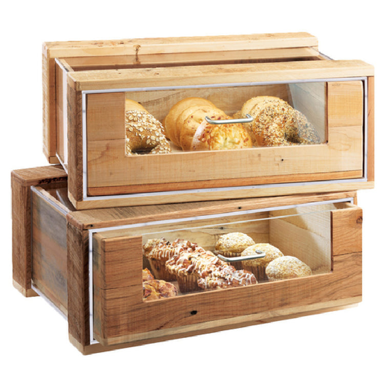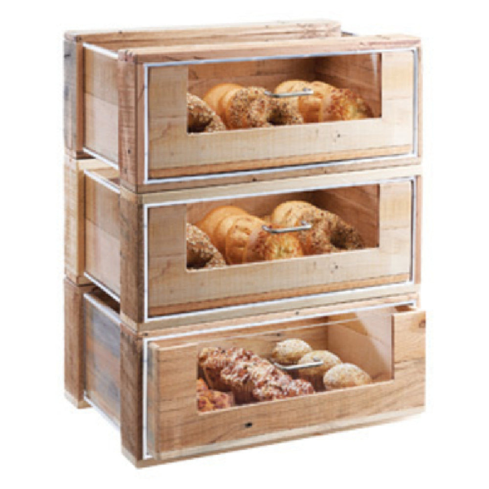 The Cal Mil 3416 Madera Pastry Drawer is a versatile and functional storage solution designed for pastry presentation and organization. With dimensions of 22 inches in width, 14-1/2 inches in depth, and 7-1/2 inches in height, this stackable unit maximizes space efficiency in any bakery or café setting. Crafted from rustic pine, it exudes a natural, warm aesthetic that complements a variety of interior designs. The inclusion of a sturdy handle ensures easy access to the contents, while the removable clear liner allows for convenient cleaning and maintenance. This product's stackable feature is particularly beneficial for businesses with limited counter space, enabling a compact and streamlined display. Ideal for the food service industry, the Cal Mil 3416 Madera Pastry Drawer offers a practical and attractive solution for showcasing pastries, enhancing the visual appeal of your offerings while maintaining organizational efficiency. Its thoughtful design not only supports aesthetic presentation but also provides functional benefits tailored to the demands of professional environments. The combination of rustic charm and practical design makes it an invaluable addition to any establishment focused on delivering quality pastry experiences.