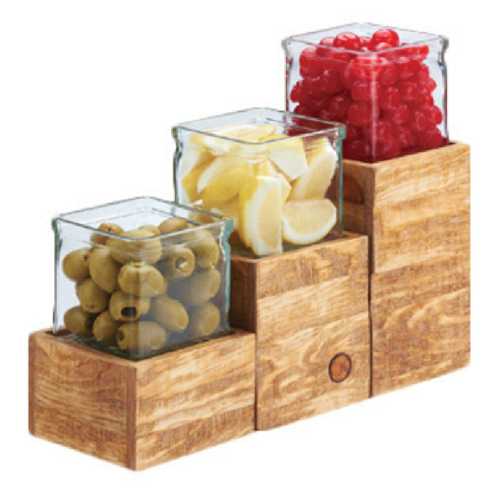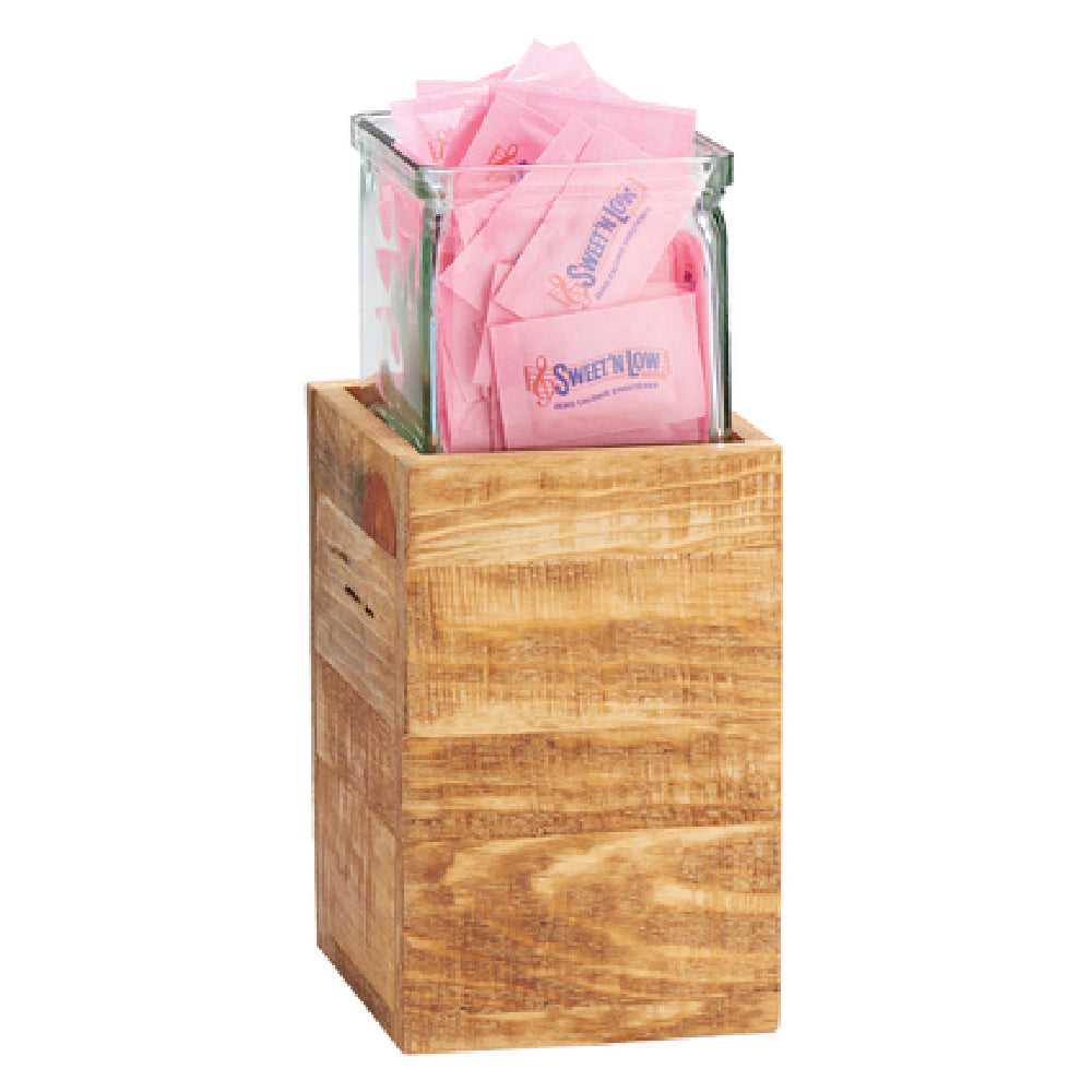 The Cal Mil 3427-7-99 Madera Single Jar Riser is a precisely crafted piece measuring 4-1/2"W x 4-1/2"D x 7"H, designed to enhance the presentation of various items through its elegant square form. This riser is constructed from rustic pine, offering a distinctive aesthetic that complements both contemporary and traditional settings. Its sturdy build supports a glass jar, creating a harmonious blend of materials that brings an understated yet sophisticated charm to any display arrangement. The Cal Mil Madera Single Jar Riser is particularly valuable for businesses in the hospitality and catering industries, where aesthetics and space optimization are paramount. Its compact dimensions make it an ideal choice for buffets, dessert stations, or coffee service areas, where elevating the visual appeal of products is essential. The rustic pine finish not only offers durability but also adds a natural, earthy touch to the decor, enhancing the overall ambiance. This riser provides a unique combination of functionality and style, making it a versatile addition to various environments, from high-end restaurants to casual dining establishments, where presentation plays a crucial role in customer experience.