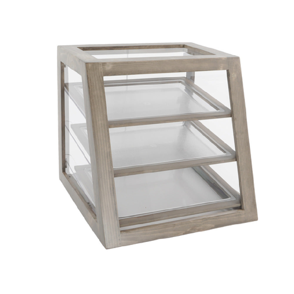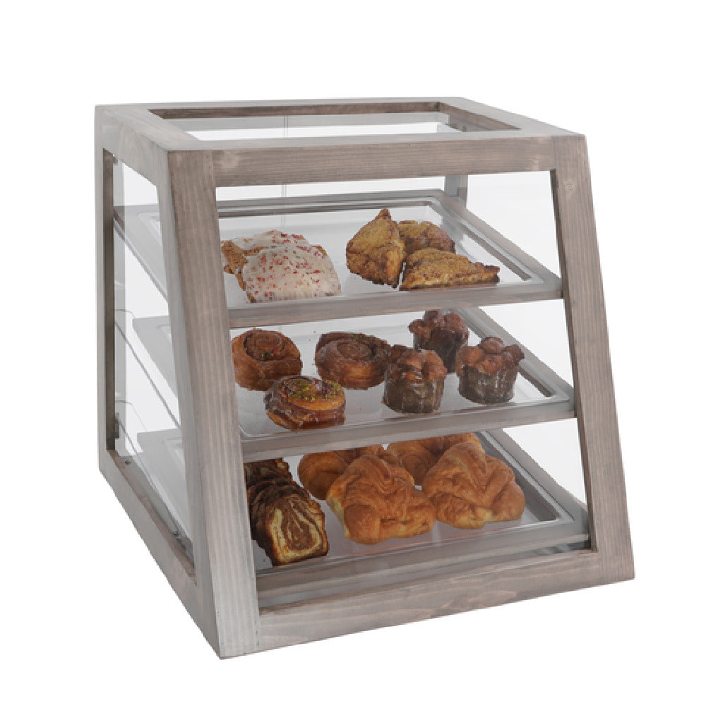 The Cal Mil 3432-110 Aspen Display Case is a versatile ambient display unit measuring 21-1/2 inches by 21 inches by 21-1/2 inches in height. This meticulously designed case features three slanted tiers, providing an optimal arrangement for showcasing a variety of products, making it an excellent choice for businesses within the foodservice industry. The display case is available in two configurations: Self-Serve, allowing customers to directly access the displayed items, and Attendant Serve, where an attendant can assist in product selection. This flexibility caters to different service styles and enhances the user experience. The Cal Mil Aspen Display Case is ideal for bakeries, cafes, and retail stores aiming to present their products attractively while maintaining easy accessibility. Its ambient nature ensures that it seamlessly integrates into various settings without requiring additional power sources, making it a practical and efficient solution for displaying perishable goods. The simple yet elegant design complements a wide range of interior styles, making the Cal Mil 3432-110 Aspen Display Case a valuable asset for any establishment looking to enhance their product presentation and customer interaction.