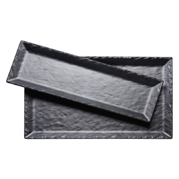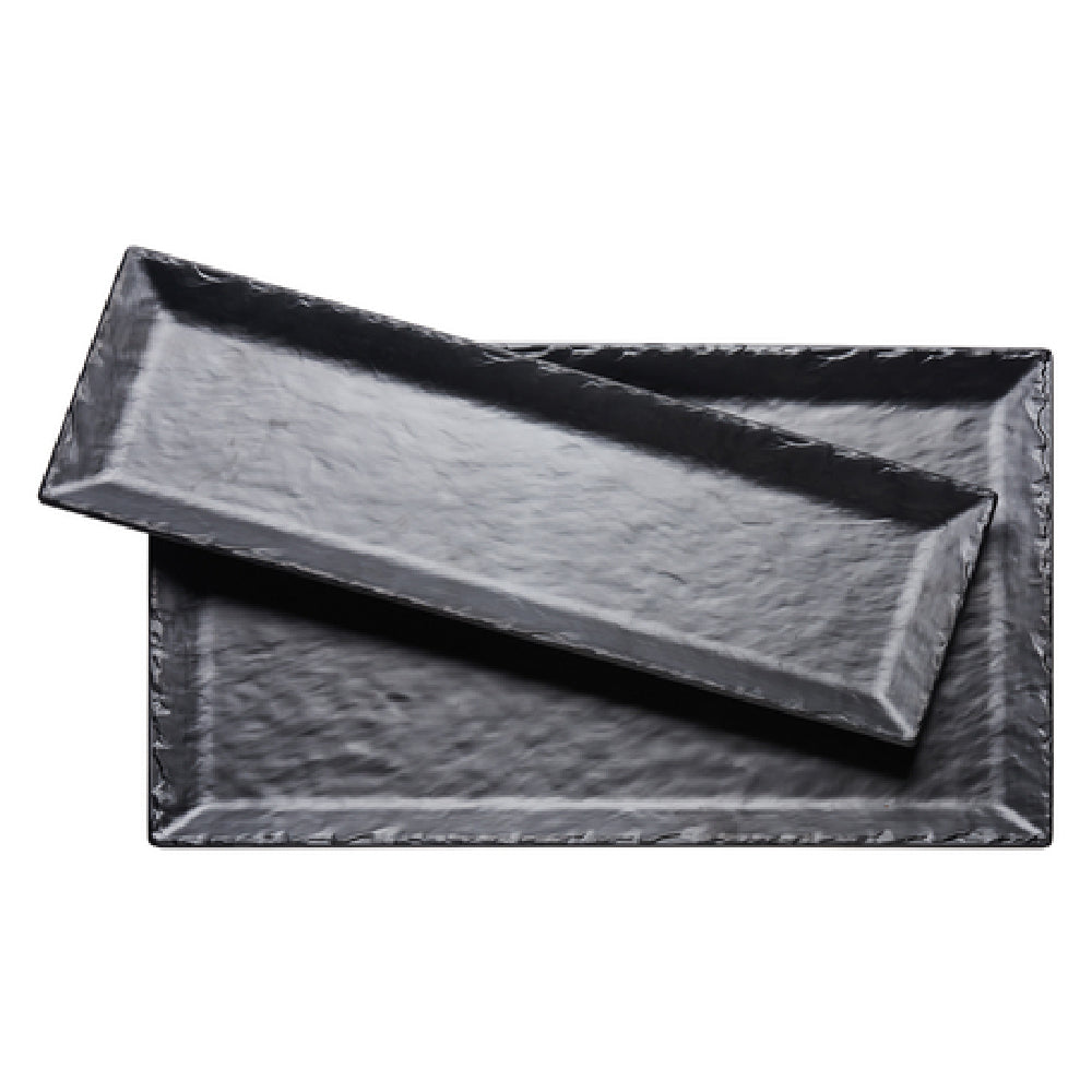 The Cal Mil 3459-2113-65M Platter is a versatile serving solution measuring 21 inches in width, 13 inches in depth, and 1 inch in height. This rectangular platter is crafted from durable melamine, offering a lightweight yet robust option ideal for various settings. Its black faux slate finish provides a sophisticated, modern aesthetic, making it suitable for upscale dining environments and casual events alike. This platter's generous size accommodates an array of culinary presentations, from appetizers and desserts to main dishes, catering to the needs of restaurants, catering services, and hospitality venues. The use of melamine not only ensures longevity and resistance to chipping and breaking but also offers a cost-effective alternative to real slate, appealing to budget-conscious buyers. The Cal Mil 3459-2113-65M Platter's design enhances food presentation while ensuring practicality and ease of use, making it a favored choice among professionals in the food service industry. Its sleek appearance and practicality make it a valuable addition for event coordinators and restaurateurs seeking to enhance their table settings with style and functionality.