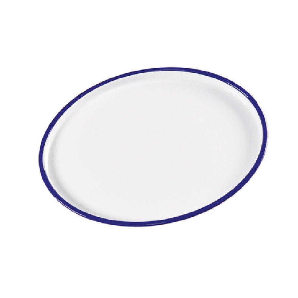 The Cal Mil 3482-15 Serving Tray is an expertly crafted piece, measuring 12 inches in width, 16 inches in depth, and 1-1/4 inches in height, with a distinct oval shape. Made from durable white melamine, this tray embodies a sleek enamelware finish accented with a subtle blue hue, providing an elegant touch to any service setting. Its robust construction makes it highly suitable for various industry segments, including hospitality, catering, and food service, where both durability and aesthetics are crucial. The Cal Mil 3482-15 Serving Tray's refined design and adaptable size ensure it caters to a wide range of presentation needs, from elegantly serving appetizers at upscale events to offering an organized display for buffet settings. This combination of practicality and style allows establishments to maintain a sophisticated presentation while ensuring the tray’s longevity and resistance to daily wear and tear. Its lightweight yet sturdy build ensures ease of handling and transportation, making it an ideal choice for frequent use in dynamic service environments. The Cal Mil 3482-15 Serving Tray stands out as a practical and stylish solution, meeting the high standards expected in the professional settings it is designed for.