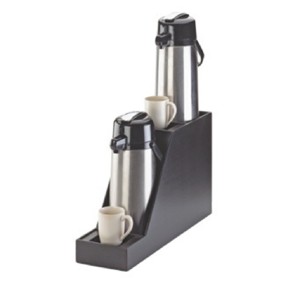 The Cal Mil 360-2-96 Midnight Bamboo Airpot Stand is a meticulously crafted unit designed for efficiency and elegance in beverage service settings. Measuring 7-1/2 inches in width, 23-1/2 inches in depth, and 15-1/4 inches in height, this two-tier stand is adept at accommodating two airpots, each with a capacity of up to 3.0 liters. Its midnight bamboo construction not only enhances the aesthetic appeal but also ensures durability and sustainability, making it a standout choice for environmentally conscious businesses. The dual-tier design offers a practical solution for maximizing space, allowing for organized and streamlined service in high-traffic areas, such as cafes, conference centers, and hotel breakfast bars. This airpot stand provides a sophisticated presentation of beverages while maintaining ease of access for customers and staff alike. With its versatility and stylish design, the Cal Mil 360-2-96 is an ideal fit for establishments looking to enhance their beverage service with a touch of elegance and efficiency.