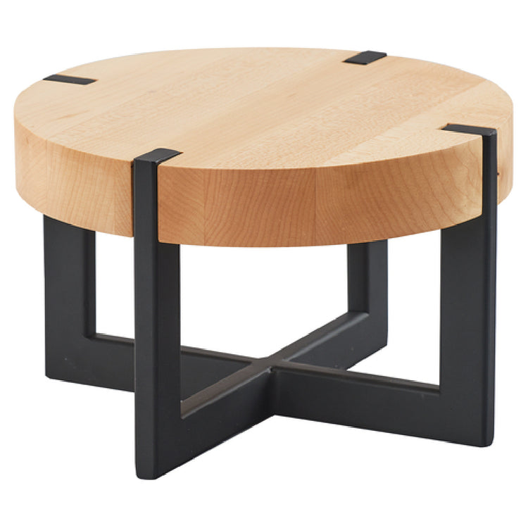 The Cal Mil 3642-9-71 Display Riser 9-1/2" dia. x 6"H Round is a versatile presentation tool designed to enhance the visual appeal of any display. With a diameter of 9-1/2 inches and a height of 6 inches, this round display riser allows for elevated presentations that capture attention in any setting. The black metal base provides a sturdy and stylish foundation, ensuring stability while adding a modern touch to the overall aesthetic. Crafted with a maple top, it delivers a warm, natural contrast that complements a variety of display themes, from rustic to contemporary. This riser is ideal for use in restaurants, catering events, and retail environments where highlighting products or dishes is essential. Its dimensions and design make it suitable for a range of applications, providing a practical solution for presenting everything from desserts to merchandise. The combination of durable materials and elegant design ensures that the Cal Mil 3642-9-71 Display Riser not only serves as a functional piece but also enhances the overall presentation, making it a valuable addition to any display strategy across multiple market segments.