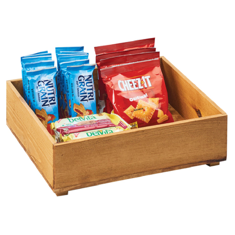 The Cal Mil 3682-1210-99 Madera Stacking Box is a versatile and elegantly designed storage solution, measuring 12 inches in width, 10 inches in depth, and 3-1/2 inches in height. Crafted with a rustic pine finish, this rectangular stacking box offers both aesthetic appeal and functional utility for various industry segments. Featuring four sturdy feet, it ensures stability when stacked or placed on display surfaces, which makes it ideal for use in catering events, retail environments, or hospitality settings where presentation and organization are crucial. The box's compact dimensions allow for efficient use of space while maintaining an attractive presentation. This product is particularly valuable for businesses seeking to enhance their display capabilities with a stylish yet practical option. Its rustic pine construction not only provides durability but also adds a touch of natural charm to any setting. The Cal Mil 3682-1210-99 Madera Stacking Box is an exceptional choice for professionals in the food service and retail industries, offering a unique combination of style, practicality, and dependable performance.