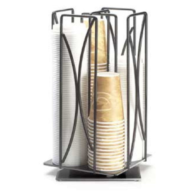 The Cal-Mil 369 Cup/Lid Organizer is a compact and efficient storage solution, measuring 8 inches in width, 8 inches in depth, and standing at a height of 17-1/2 inches. Designed with four distinct sections, this revolving organizer is adept at accommodating cups and lids up to a diameter of 3-3/4 inches, providing an organized and accessible setup for various beverage service environments. Constructed from durable iron and finished in a sleek black color, this organizer not only ensures longevity but also complements a wide range of interior decors. Its rotating design allows for easy access to cups and lids, enhancing workflow efficiency in bustling cafes, self-service stations, or office break rooms. The Cal-Mil 369 Cup/Lid Organizer stands out in its category for its combination of practical design and robust construction, making it a desirable choice for establishments looking to optimize their beverage service operations. Its compact size and versatile use case make it appealing to both small and large businesses aiming to maintain a tidy and efficient workspace for beverage dispensing.