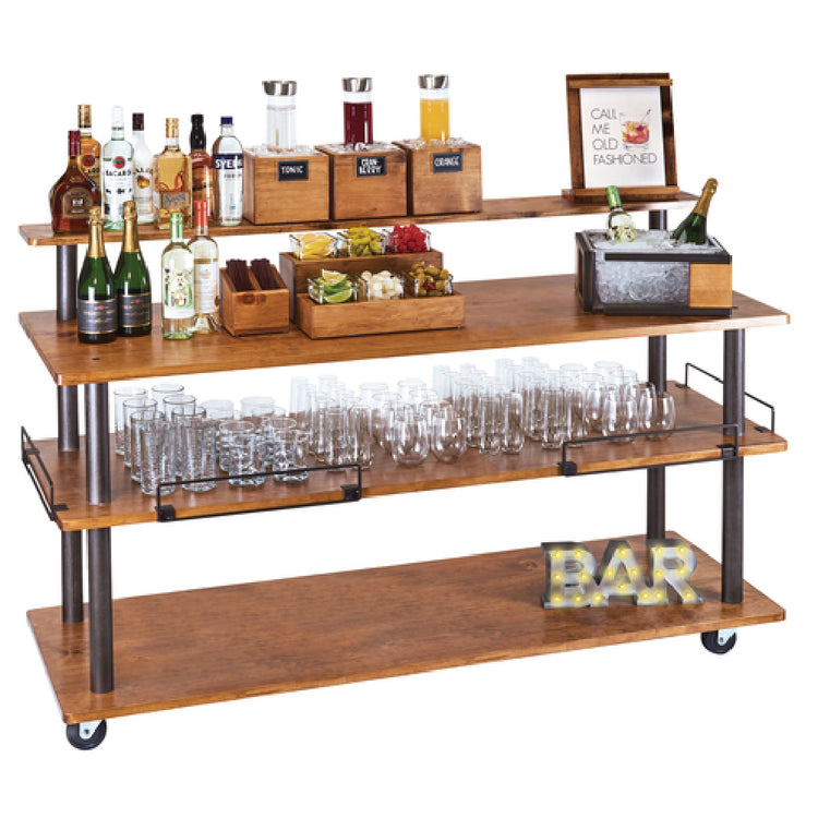 The Cal-Mil 3698-6-84SHELF Sierra U-Build Cart Top Shelf stands out with its spacious dimensions of 72"W x 8"D x 9"H, making it a versatile addition to any industry requiring customizable storage solutions. This rectangular shelf is expertly crafted with bronze support beams, providing a durable framework that ensures longevity and reliability. The use of wood in its construction adds a touch of elegance and warmth, making it a visually appealing and functional component of any cart system. Its BPA-Free certification underscores a commitment to safety and environmental consciousness, appealing to businesses prioritizing health standards. This shelf can serve various market segments, from food service establishments needing additional space for ingredients or equipment, to retail environments looking to enhance display capabilities. Its design allows for easy integration into existing setups, maximizing utility without compromising aesthetic appeal. The Cal-Mil Sierra U-Build Cart Top Shelf's combination of robust construction, elegant materials, and safety features makes it an essential component for industries that value both functionality and design.