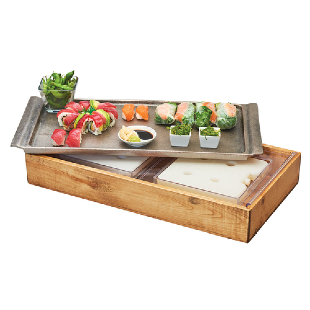 Cal Mil 3699-1123-99 Madera Cold Concept Base 23"W X 12-1/2"D X 3-1/2"H Rectangular is a meticulously designed piece of equipment that caters to the precise needs of the food service industry. With dimensions measuring 23 inches in width, 12-1/2 inches in depth, and 3-1/2 inches in height, this cold concept base is perfectly suited for a variety of culinary environments requiring reliable cold storage solutions. Featuring a rustic pine finish, this product exudes a charming aesthetic that complements diverse decor styles, making it an attractive addition to any setting. The unit includes a cold pack and liner, enhancing its capability to maintain optimal temperature conditions for perishable items. The rectangular shape of the base provides ample surface area, allowing for efficient space utilization in busy kitchens or buffet setups. The Cal Mil 3699-1123-99 is designed to meet the demands of different market segments, from high-end restaurants to casual dining establishments, by providing a durable and visually appealing solution that ensures both functionality and style. Its robust construction and thoughtful design reflect Cal Mil's commitment to quality and performance, making it a trusted choice among professionals in the food service industry.
