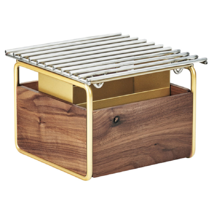 The Cal Mil 3711-46 Mid-Century Chafer Alternative stands out as a sophisticated and practical solution for food presentation. This square chafer, with dimensions of 12 inches in width, 12 inches in depth, and 7-1/4 inches in height, is designed to blend aesthetic appeal with functionality. The unit features walnut windguards, adding a touch of elegance while ensuring protection from external elements, making it suitable for upscale catering services or buffet presentations. The removable grill is an essential component, allowing for versatile use and easy maintenance, enhancing the product's practicality for busy food service environments. The brass frame not only provides a sturdy and reliable structure but also adds a timeless mid-century modern flair, making it an eye-catching centerpiece for any culinary display. The Cal Mil 3711-46 is ideally suited for a range of market segments, from high-end hotels seeking to elevate their dining experience to event planners who require stylish yet functional serving solutions. Its unique combination of design and utility makes it a valuable addition to any professional setting that prioritizes both form and function in its food service equipment.