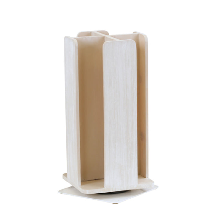 The Cal Mil 378-113 Revolving Cup & Lid Organizer is an innovative solution designed to streamline the organization and accessibility of beverage service areas. Measuring 9 inches in width, 9 inches in depth, and standing 18-1/2 inches tall, this compact unit is engineered to fit seamlessly into various service environments. It features four distinct sections, each capable of holding cups and lids up to 3.75 inches in diameter, making it suitable for a wide range of standard-sized disposable drinkware. Crafted from white-washed pine wood, the organizer not only offers durability but also adds an aesthetic appeal that complements modern and rustic décor styles. The revolving design ensures easy access and efficient space utilization, catering to the needs of high-traffic areas such as cafes, office break rooms, and self-serve beverage stations. The Newport style of the wood finish highlights the product’s elegant yet functional nature, offering a stylish solution that enhances user experience by keeping service areas tidy and well-organized. This practical accessory exemplifies Cal Mil's commitment to quality and functionality, providing a versatile and attractive organizational option suitable for different markets within the hospitality and food service industries.