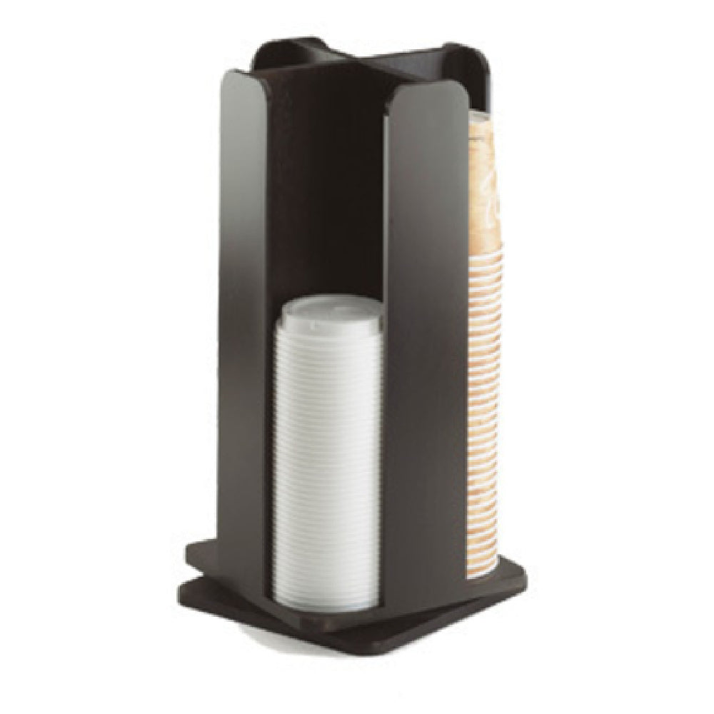 The Cal Mil 378-96 Midnight Bamboo Cup/Lid Organizer is a highly functional and stylish solution for organizing cups and lids in a compact space. Measuring 8 inches in width, 8 inches in depth, and 18-1/4 inches in height, this organizer is designed with four sections, efficiently accommodating cups and lids up to a diameter of 3-3/4 inches. Its revolving design ensures easy access and efficient storage, making it ideal for fast-paced environments like coffee shops, cafeterias, and office break rooms. The midnight bamboo finish offers an elegant aesthetic, seamlessly blending into various settings while providing a sustainable alternative to plastic organizers. This product serves a diverse range of market segments, from small businesses seeking an eco-friendly organizing solution to larger enterprises needing a durable and space-efficient unit. The Cal Mil 378-96 Midnight Bamboo Cup/Lid Organizer is a versatile addition to any beverage service operation, delivering both functionality and an attractive design.
