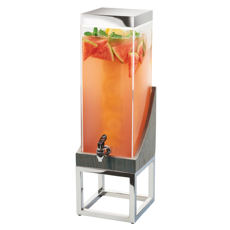 The Cal-Mil 3804-3INF-83 Ashwood Beverage Dispenser is a meticulously designed unit with a 3-gallon capacity, tailored for both functionality and aesthetic appeal. Measuring 8 inches in width, 8 inches in depth, and standing at 26 inches in height, this square beverage dispenser is ideal for various settings, from professional catering events to self-serve buffets. Its acrylic infusion chamber and body provide a clear view of the contents, enhancing presentation while allowing for easy monitoring of beverage levels. This dispenser features a mirrored metal base that adds a touch of elegance and stability to the unit, complementing its oak wood construction with a sophisticated gray wash finish. A practical drip tray is included, ensuring that serving areas remain clean and tidy. Designed to seamlessly blend into contemporary and rustic environments alike, the Ashwood Beverage Dispenser combines utility with style, making it a versatile choice for hotels, restaurants, and event spaces that seek to elevate their beverage service. Its compact size and thoughtful design cater to the needs of diverse market segments within the foodservice industry, including those emphasizing quality presentation and efficient service.