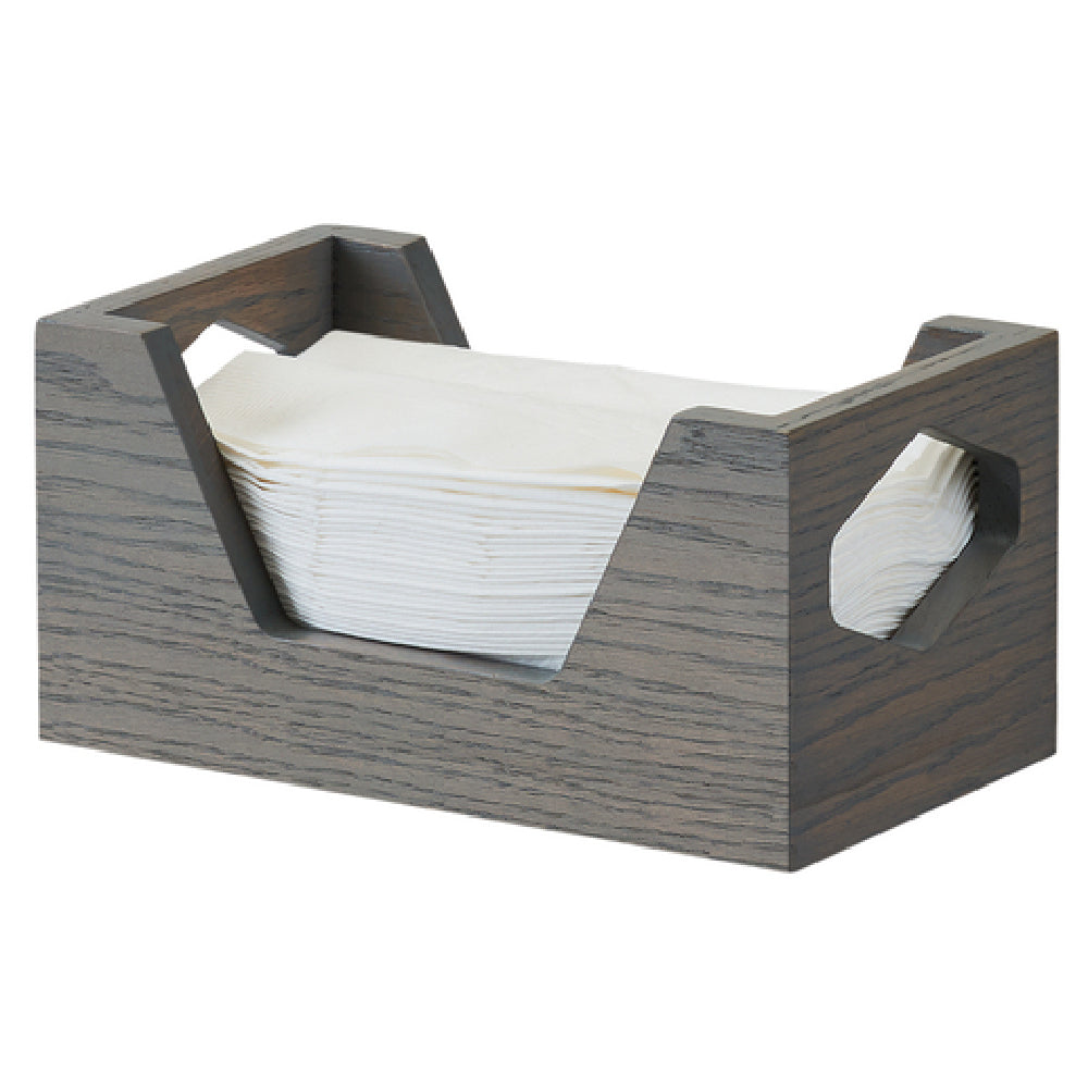 The Cal Mil 3810-83 Ashwood Napkin Holder is a meticulously designed accessory, measuring 4 inches in width and 8 inches in height, perfectly suited for both functional and aesthetic applications across various market segments, including hospitality and food service industries. This rectangular napkin holder is crafted from high-quality oak wood, finished with an elegant gray wash that adds a touch of sophistication to any tabletop setting. Its design is enhanced by geometric end cutouts, which not only contribute to its modern aesthetic appeal but also facilitate easy access to napkins, ensuring efficiency in high-demand environments. The durable oak construction promises longevity, making it a reliable choice for restaurants, cafes, and catering businesses looking to maintain a cohesive and stylish presentation. The Cal Mil 3810-83 Ashwood Napkin Holder stands out as a practical and attractive solution for establishments aiming to enhance their service experience while maintaining a refined appearance. Its thoughtful design and practical dimensions cater to the specific needs of diverse market segments, providing both form and function in a single, well-crafted product. This napkin holder seamlessly integrates into various decorative themes, making it a versatile addition to any professional setting.