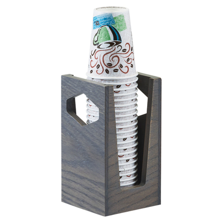 The Cal Mil 3812-83 Ashwood Cup/Lid Holder is a meticulously crafted, single-section unit, designed to provide an organized solution for cup and lid storage in various industry settings. Measuring 5 inches in width, 5 inches in depth, and 9 inches in height, this holder is tailored to accommodate cups and lids up to 3-3/4 inches in diameter, ensuring versatility across a range of sizes. The geometric cutouts on the holder not only add a visually appealing detail but also contribute to the accessibility and organization of stored items. Constructed from high-quality oak wood, the holder is finished with a gray wash, offering a sophisticated aesthetic that seamlessly complements modern interiors. This product is ideal for businesses seeking a stylish yet functional storage solution, particularly within the hospitality and food service sectors, where organization and presentation are paramount. The Cal Mil 3812-83 Ashwood Cup/Lid Holder stands as a testament to both durability and design, making it an essential accessory for any establishment aiming to maintain a neat and professional environment.