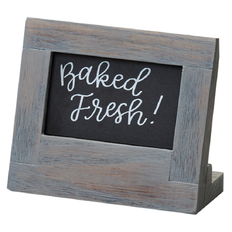 The Cal Mil 3818-23-83 Ashwood Chalkboard is a versatile and practical accessory with a compact size of 5-1/2"W x 2-1/2"D x 4-1/2"H OAL, perfect for a variety of industry applications. Featuring a 3"W x 2"H writing surface, it offers ample space for concise messaging, making it ideal for cafes, restaurants, and retail environments to display daily specials, promotional offers, or directional information. Crafted from oak wood with a sophisticated gray wash finish, it combines durability with an elegant aesthetic, blending seamlessly into contemporary or rustic settings. This chalkboard's size and design make it a useful tool for enhancing communication and engagement in customer-facing areas. Its portable nature ensures ease of repositioning and storage, catering to businesses that require flexibility in their display options. The Cal Mil 3818-23-83 Ashwood Chalkboard is a functional and stylish solution for establishments seeking to enhance their visual appeal while effectively conveying information. Its quality craftsmanship and thoughtful design demonstrate Cal Mil's commitment to providing products that meet the diverse needs of different market segments, ensuring both practicality and aesthetic value in professional settings.