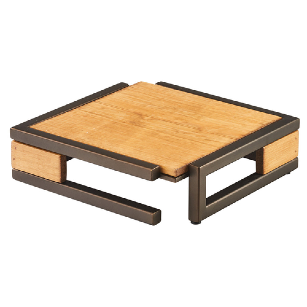 The Cal Mil 3902-3-84 Sierra Display Riser is a versatile and stylish display solution, measuring 12"W x 12"D x 3-1/4"H. This square riser features a rustic pine construction, seamlessly blending with a metal frame that sports a durable bronze finish. The combination of materials offers both aesthetic appeal and sturdiness, making it an ideal choice for a variety of commercial settings, including restaurants, catering events, and retail spaces. Its compact size allows it to fit comfortably on countertops or tabletops, enhancing the presentation of culinary creations or merchandise. The rustic pine provides a warm, natural look, while the metal frame ensures stability and longevity, even in high-traffic environments. The bronze finish gives a touch of elegance, complementing both modern and traditional decor. The Cal Mil 3902-3-84 Sierra Display Riser stands out as a practical yet stylish display solution, providing a unique value proposition for businesses looking to enhance their presentation with a touch of rustic charm.