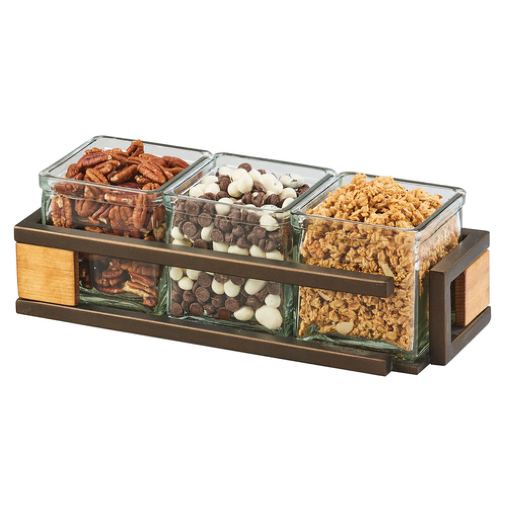 Cal Mil 3910-3-84 Sierra Jar Display 13"W X 5"D X 4-1/4"H (3) 4"W X 4"D Glass Jars