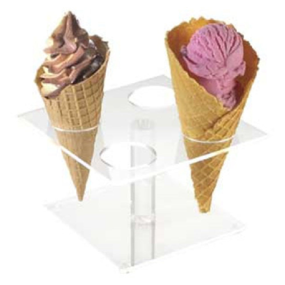 The Cal Mil 396 Cone Holder Pedestal Waffle is a meticulously crafted piece designed to accommodate the display and serving needs of various culinary environments, from ice cream parlors to buffet settings. This cone holder measures 7 inches in both width and depth, with a height of 4 inches, ensuring it fits comfortably on any countertop while maintaining an elegant display. Engineered to hold up to four cones with a diameter of 2 inches, it provides a versatile solution for presenting an array of waffle cones. The clear construction not only offers a clean and modern aesthetic but also allows the cones to be showcased prominently. Importantly, this cone holder is BPA-free, aligning with health-conscious requirements and ensuring that it is safe for food contact. The pedestal design elevates the cones, adding a touch of sophistication to the presentation. Suitable for any establishment looking to enhance its service efficiency and presentation, the Cal Mil 396 Cone Holder Pedestal Waffle is an ideal choice for displaying waffle cones with style and practicality.