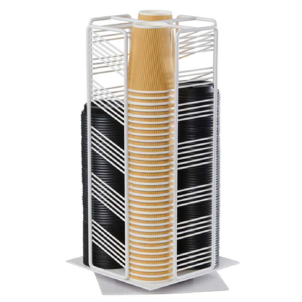 The Cal Mil 4104-15 Portland Cup/Lid Organizer is a compact and efficient solution for organizing cups and lids in a variety of settings. Measuring 8-3/4 inches in width, 8-3/4 inches in depth, and 17-3/4 inches in height, this revolving organizer is designed to hold cups and lids up to 3-3/4 inches in diameter. Crafted from wire material, the organizer features a sleek white finish, adding a touch of modernity to its design. It is BPA-free, ensuring a safe and eco-friendly option for establishments prioritizing health standards. This product is particularly valuable in food service environments such as cafes, cafeterias, and break rooms where efficient storage and accessibility are essential. Its revolving mechanism allows for quick and easy access, enhancing operational efficiency and customer satisfaction. The Cal Mil 4104-15 Portland Cup/Lid Organizer is not only practical but also durable, making it a reliable choice for businesses seeking to maintain an organized beverage station with minimal effort. Its thoughtful design and functional attributes make it an indispensable asset for any setting that requires organized cup and lid storage.