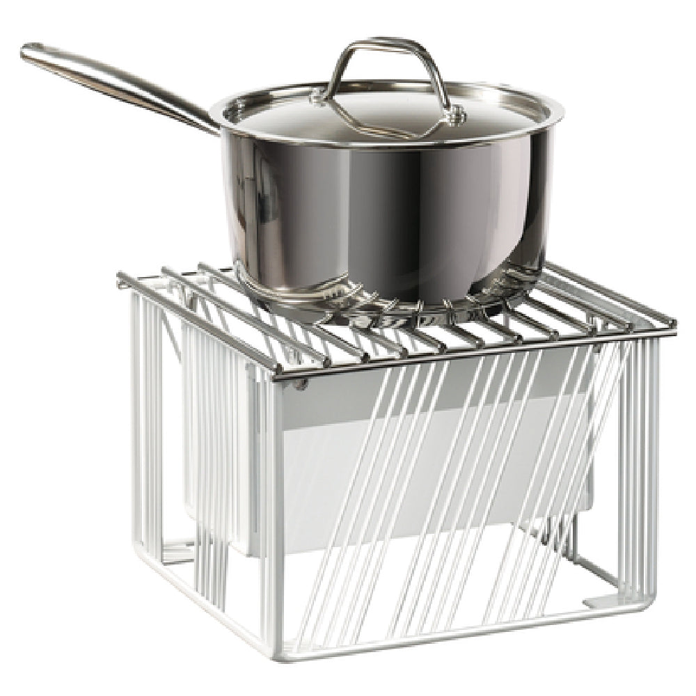 The Cal-Mil 4106-15 Portland Chafer Alternative is a compact and versatile solution for food service presentations. This small, rectangular unit with dimensions of 10-1/4"W x 10"D x 7-1/2"H is designed to meet the needs of various segments in the catering and hospitality industries. Featuring a grill top, it facilitates efficient heat distribution, making it ideal for maintaining the temperature of cooked dishes. The built-in windguard enhances its functionality by providing protection against external elements, which is particularly beneficial for outdoor events. This chafer alternative is induction ready, making it compatible with modern heating technologies and contributing to energy efficiency. Constructed with a durable wire frame, it ensures stability and longevity. The sleek white finish adds a touch of elegance to any buffet setup, while the BPA-free material ensures safety and compliance with health standards. Whether used in upscale restaurants, catering services, or hotel buffets, the Cal-Mil 4106-15 Portland Chafer Alternative seamlessly integrates technical sophistication with practical usability, making it an essential item for professionals focused on delivering quality food service experiences.