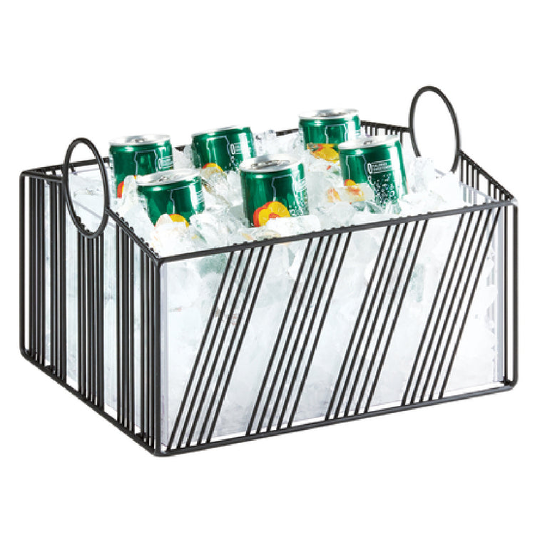 The Cal Mil 41115-10-13 Portland Ice Housing is a versatile and practical solution for presenting and maintaining chilled items in a professional setting. With dimensions of 12-7/8"W x 13-1/4"D x 8-1/8"H, this rectangular ice housing offers ample space for storing ice, ensuring that your beverages and perishables remain cool and appealing. This unit includes a durable polycarbonate pan, which is known for its strength and resistance to impact, making it a reliable choice for busy environments. The addition of a wire structure adds to its stability, providing extra support for the contents. The housing is finished in a sleek black color, allowing it to seamlessly integrate into various design aesthetics, from modern to classic. Importantly, the Cal Mil 41115-10-13 is BPA-free, reflecting a commitment to safety and health standards, which is particularly significant for establishments where consumer safety is paramount. This product is ideally suited for restaurants, hotels, catering services, and event planners who seek a balance of functionality and style in their service equipment. Its thoughtful design and robust materials make it a valuable asset for any hospitality or foodservice operation looking to enhance their cold display presentation.
