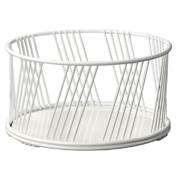 The Cal Mil 4114-10-15 Portland Basket is a large, round wire basket with dimensions of 10-1/2 inches in diameter and 5-1/2 inches in height, meticulously crafted to blend functionality with aesthetic appeal. Constructed from high-quality wire material, this basket features a sleek white finish, which complements a variety of settings, ranging from modern to rustic. The basket is BPA-free, ensuring it is a safe choice for environments where food safety is paramount. Its versatile size and robust construction make it suitable for multiple market segments, including restaurants, catering services, and retail displays. The open wire design not only offers visual access to the contents, enhancing product visibility and appeal, but also facilitates air circulation, which is beneficial for items requiring ventilation. This basket’s durable construction ensures it withstands the demands of high-traffic commercial environments while maintaining its aesthetic integrity. Whether used for displaying baked goods, organizing kitchen essentials, or as part of a decorative centerpiece, the Cal Mil 4114-10-15 Portland Basket provides a reliable and stylish solution. Its thoughtful design and emphasis on safety and usability underscore its value as a practical and attractive addition to any professional space or home setting.