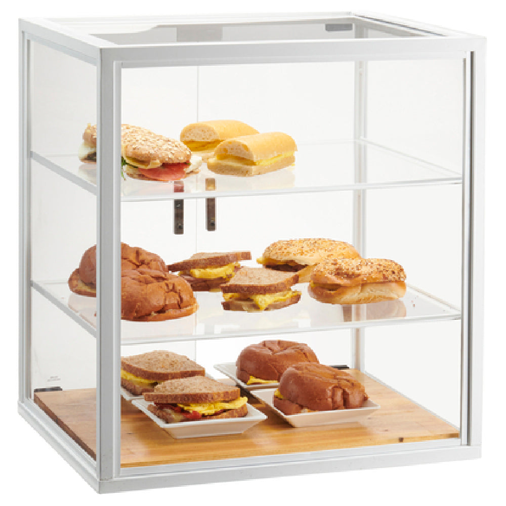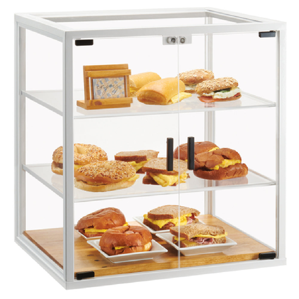 The Cal Mil 4312-15 Monterey Display Case is a meticulously crafted countertop unit designed for optimal product visibility and accessibility, essential for businesses seeking effective display solutions. With dimensions of 21"W x 17"D x 23-1/4"H, this display case provides ample space while maintaining a compact footprint suitable for various countertop settings. The 3-tier design allows for organized presentation of multiple items, making it ideal for bakeries, cafes, and retail environments that require efficient use of display space. Constructed from durable acrylic and steel, the Monterey Display Case ensures longevity and stability, essential for high-traffic areas. The dual hinged doors are equipped with handles, facilitating easy access for both staff and customers, while simultaneously protecting the contents from external elements. This practical design element supports quick service and restocking, enhancing operational efficiency. Its transparent structure maximizes product visibility, encouraging customer engagement and potentially boosting sales. The Cal Mil 4312-15 Monterey Display Case stands out as a versatile solution for businesses needing a reliable, visually appealing display unit that combines style with functionality, catering to the demands of various market segments within the food and retail industries.