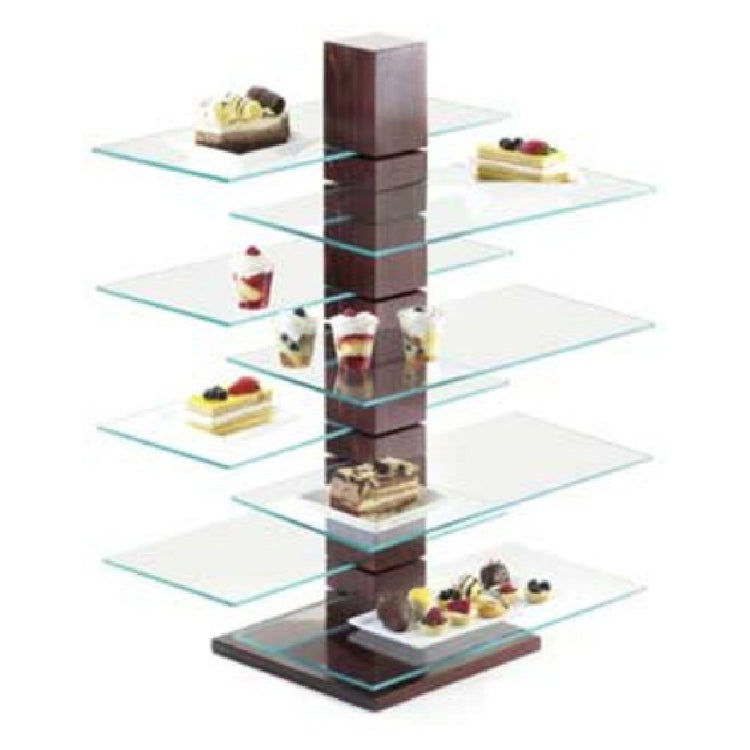 The Cal Mil 791-52 Westport Pillar Riser is a meticulously crafted display accessory designed to enhance the presentation of various items in retail or hospitality settings. Measuring 9 inches in width, 9 inches in depth, and standing at an impressive height of 32-1/2 inches, this pillar riser provides ample vertical space for showcasing products. The design features notched sides specifically intended for glass shelving, offering flexibility and customization in display arrangements. Please note that the glass shelves are sold separately, allowing users to select the appropriate shelving that best suits their needs. Constructed with a dark wood finish, this riser embodies a classic aesthetic that can complement a wide range of interior decors. The Cal Mil 791-52 is particularly valuable for environments that prioritize both functionality and visual appeal, such as upscale restaurants, boutique stores, and exhibition spaces. Its sturdy construction ensures durability, while the notched design accommodates modular display options, making it a versatile and essential tool for professional display solutions.