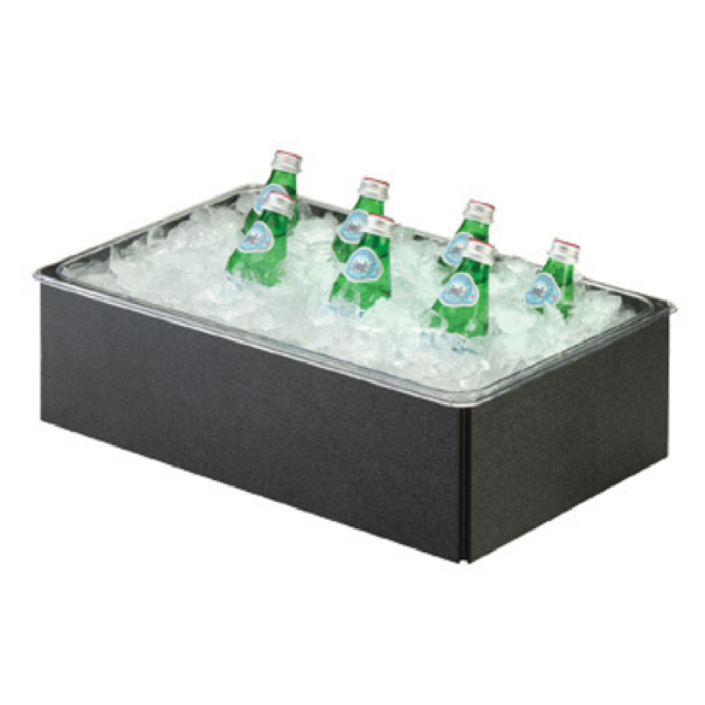 The Cal Mil BH4618-13 Beverage Ice Housing is a meticulously designed utility product with dimensions measuring 18 inches in width, 26 inches in depth, and 6 inches in height. This lightweight accessory is ideal for various industry segments looking for a reliable ice housing solution. Its standout feature is its collapsible structure, which ensures efficient storage and easy transportation. Crafted from a textured tone laminate, it boasts scratch and stain resistance, making it durable for frequent use. The use of resin hinges in its design adds to its robustness, while the ABS-backed walls further enhance its structural integrity. Available in a sleek black finish, this product is aesthetically compatible with a range of service environments. For added flexibility, an insert pan can be purchased separately, allowing for customized usage. The Cal Mil BH4618-13 Beverage Ice Housing is perfect for businesses seeking a functional and stylish option for keeping beverages cool, whether in hospitality, catering, or event settings.