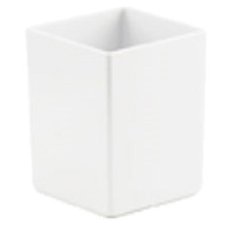 The Cal Mil C1432BODY Storage Jar is designed with a 12 oz. capacity, making it a versatile choice for various storage needs. Boasting dimensions of 4 inches in width, 4 inches in depth, and 4 inches in height, this square jar is compact yet functional, fitting seamlessly into different spaces. Crafted from durable melamine, it is both sturdy and lightweight, providing an ideal solution for environments that demand resilience and ease of handling. The jar is presented in a pristine white color, allowing it to blend with diverse decor styles or serve as a neutral background to highlight its contents. Importantly, the jar is sold without a lid, giving users the flexibility to choose a compatible closure that best suits their particular requirements. This feature might appeal to segments such as culinary professionals, retail displays, or home organizers seeking customizable storage solutions. As a product, the Cal Mil C1432BODY Storage Jar stands out for its practical size, durable material, and design versatility, making it a fitting addition to a range of settings from bustling commercial kitchens to elegant retail spaces.